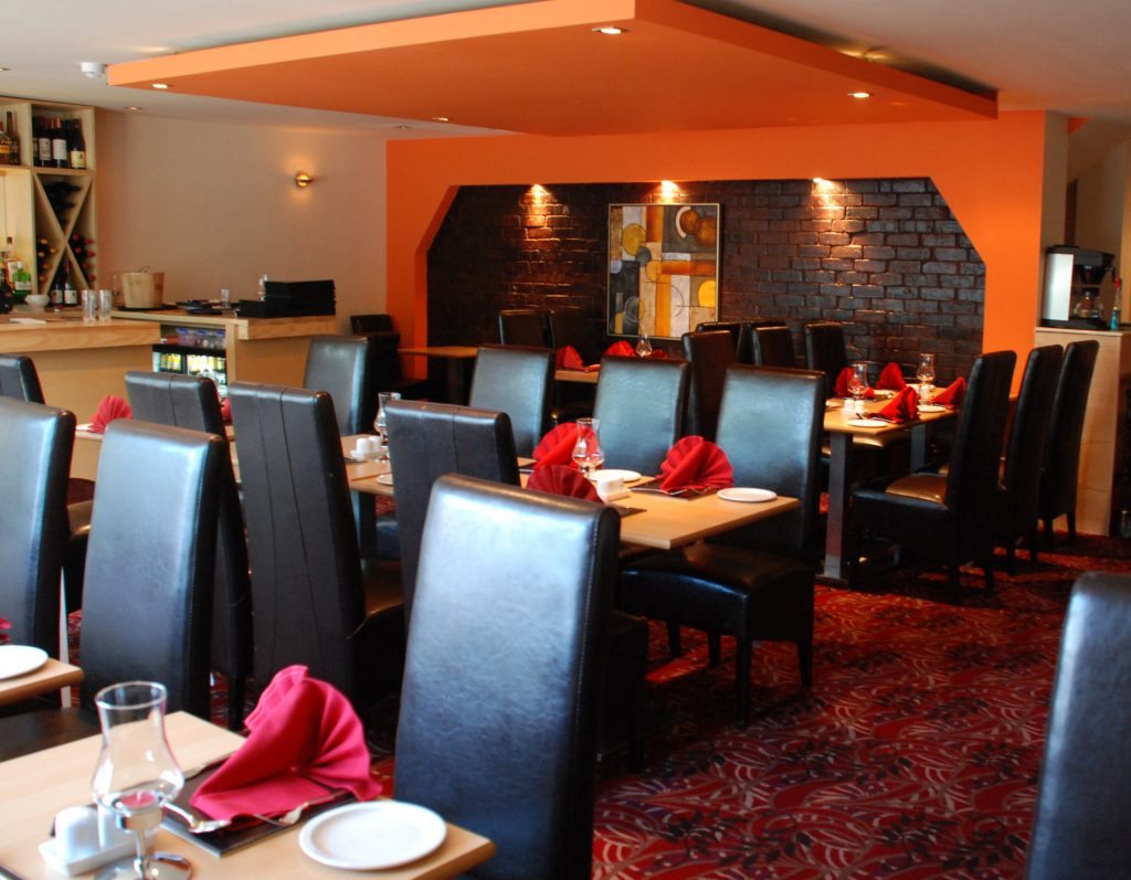 As expected from a village restaurant the venue is small (approx 40 covers) and traditional, but with a modern edge; you know you’re sat in an Indian restaurant but with vibrant orange and brick effect walls, some tasteful artwork and elegant soft furnishings, it’s welcoming and stylish. Branded crockery is a nice touch and raises the standard.